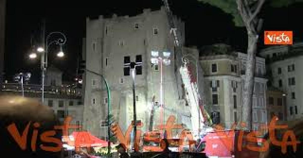Crollo Torre dei Conti a Roma, si scava con le mani per salvare l'operaio ancora sotto le macerie