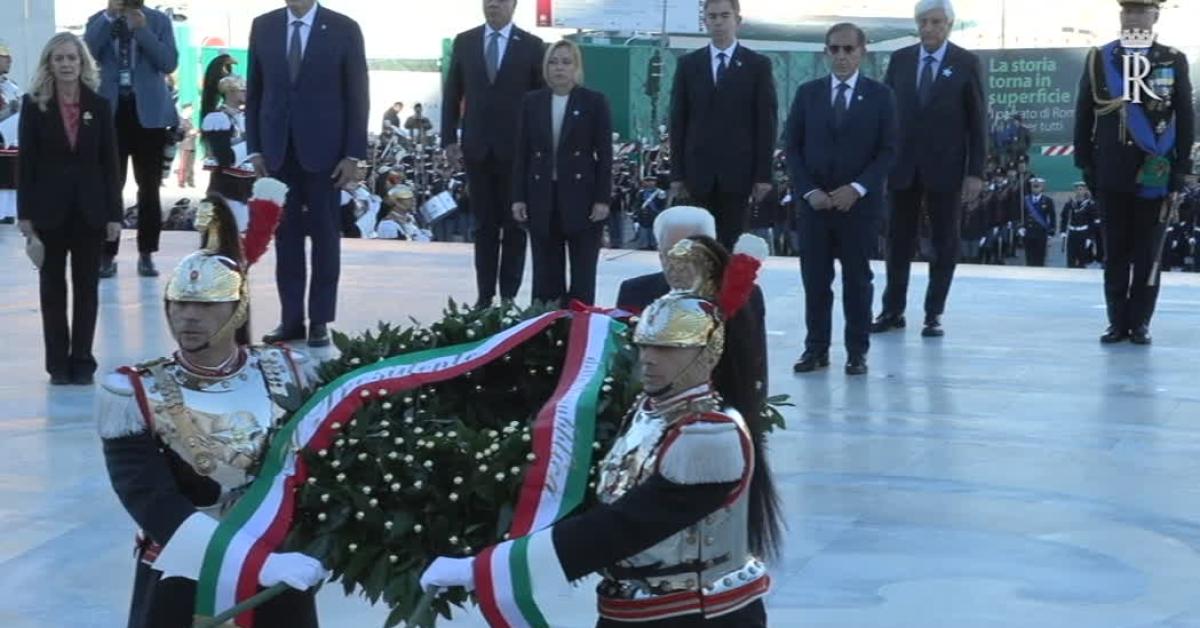 Con il presidente Mattarella, hanno partecipato alla cerimonia i presidenti di Camera e Senato, Lorenzo Fontana e Ignazio La Russa, la presidente del Consiglio Giorgia Meloni, il presidente della Corte Costituzionale Giovanni Amoroso e il ministro della Difesa Guido Crosetto.