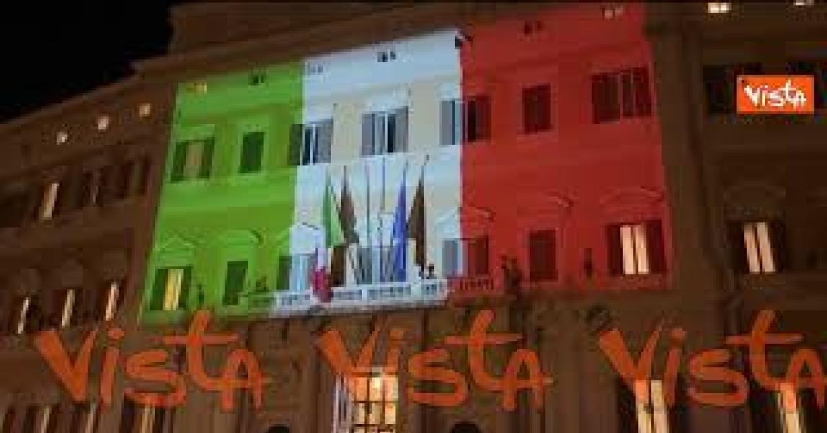 4 Novembre, Montecitorio illuminato con il tricolore per la Festa delle Forze Armate