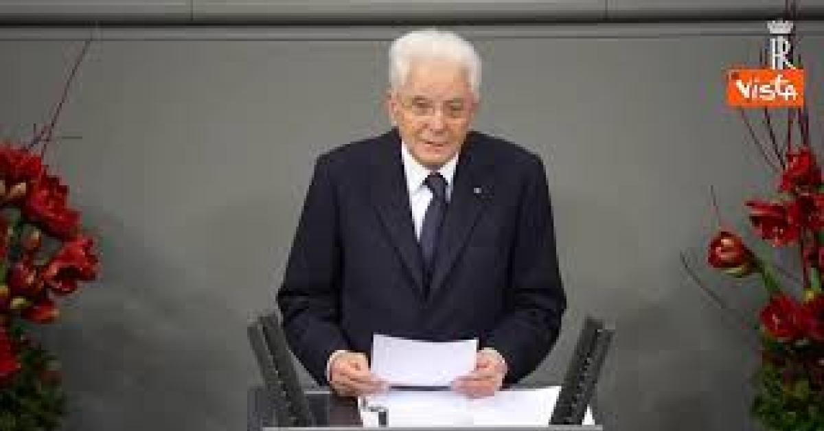 "Nuovi “dottor Stranamore” si affacciano all’orizzonte, con la pretesa che si debba “amare la bomba”. Il Trattato del 1997 che mette al bando gli esperimenti nucleari non ha visto ancora la ratifica da parte di Cina, India, Pakistan, Corea del Nord, Israele, Iran, Egitto, Stati Uniti, mentre la Russia ha ritirato la sua nel 2023. Il rispetto, sin qui, delle prescrizioni che contiene, non attenua la minaccia incombente. Si odono dichiarazioni di altri Paesi su possibili ripensamenti del rifiuto dell’arma nucleare. Emerge, allora, il timore che ci si addentri in percorsi ad alto rischio, di avviarsi ad aprire una sorta di nuovo vaso di Pandora. Tutto questo viene agevolato dal diffondersi, sul piano internazionale, di un linguaggio perentorio, duramente assertivo, che rivendica supremazia. Porta soltanto a sofferenze e a divisioni rottamare i trattati, le istituzioni edificate per porre riparo a violenze che nelle nostre società nazionali consideriamo reati e censuriamo severamente, comportamenti che taluno pretende che siano legittimi nei rapporti internazionali". Così Mattarella a Berlino in occasione della cerimonia della "Giornata del Lutto nazionale".
