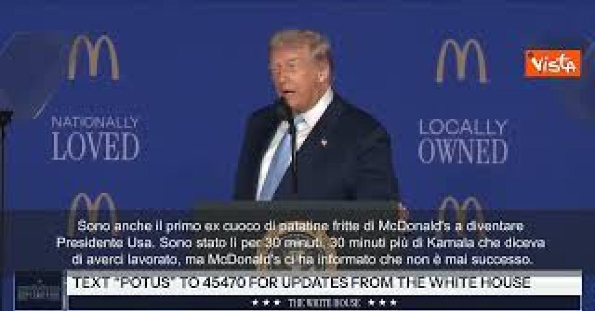 "Voglio congratularmi con voi. Siete un'azienda incredibile e sono entusiasta di essere qui con gli uomini e le donne che sono il cuore e l'anima di una delle aziende più ammirate nella storia del mondo, McDonald's. Sono anche il primo ex cuoco di patatine fritte di McDonald's a diventare Presidente Usa. Sono stato lì per 30 minuti, 30 minuti più di Kamala che diceva di averci lavorato, ma McDonald's ci ha informato che non è mai successo". Lo ha detto Trump al summit impact di McDonald's.
