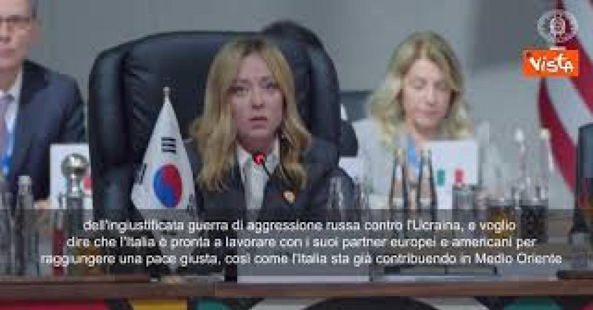 Meloni al G20: Lavorare con partner Usa e Ue per pace giusta in Ucraina