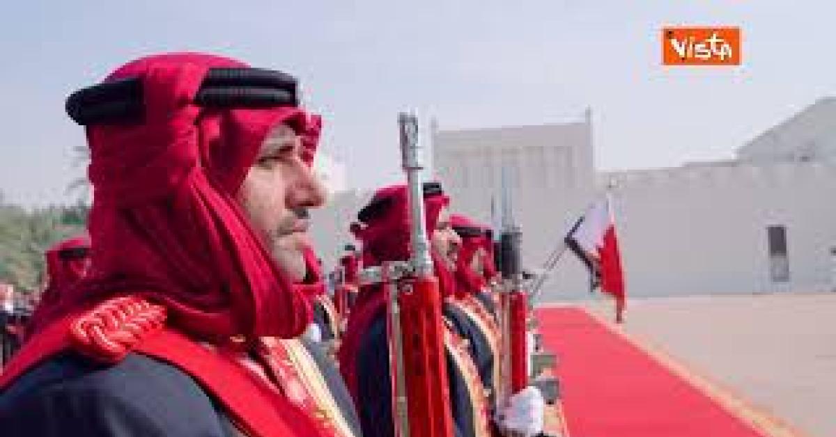 (Agenzia Vista) Bahrein, 03 dicembre 2025 Il Re del Bahrein Hamad bin Isa Al Khalifa ha accolto Giorgia Meloni con gli Onori Militari. L’Italia entra con la Premier al vertice del Consiglio di Cooperazione del Golfo, scambio di accordi tra i due. Fonte: Agenzia Vista / Alexander Jakhnagiev