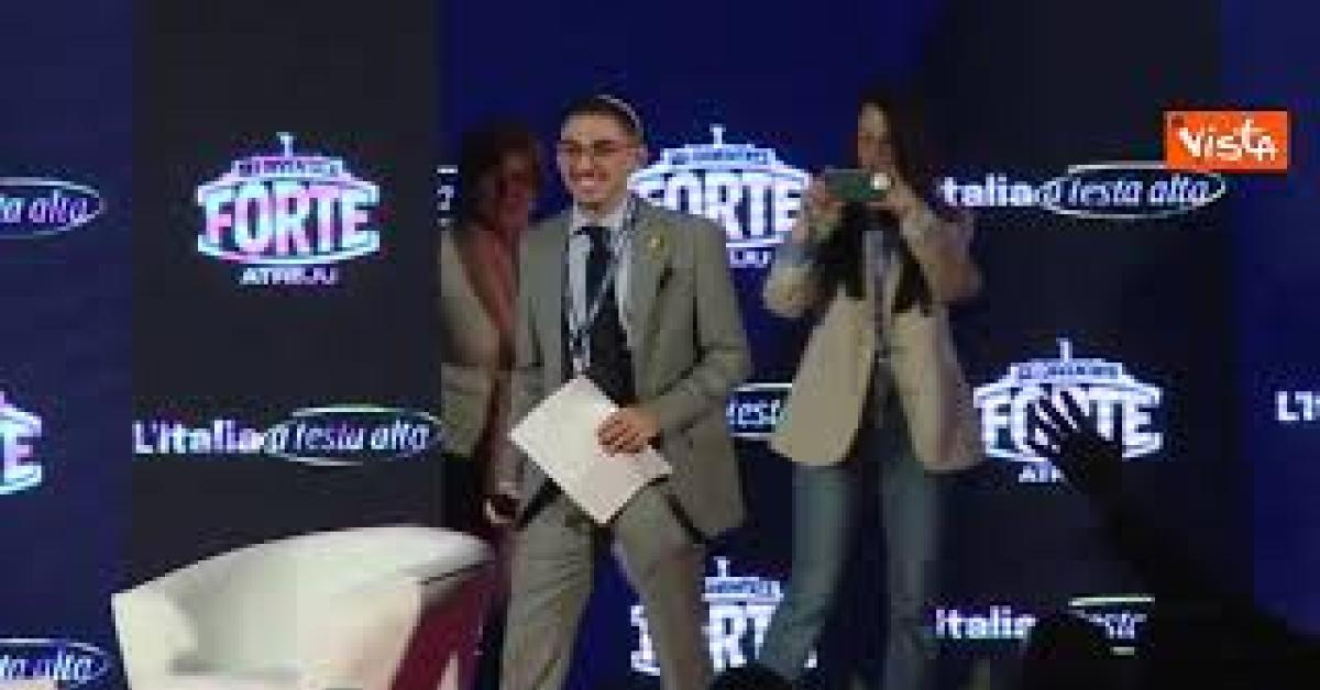 (Agenzia Vista) Roma, 08 dicembre 2025 Un lungo applauso e una standing ovation ha salutato Rom Braslavski al suo arrivo sul palco di Atreju, la kermesse di FdI in corso a Roma. Il 21enne israeliano stato rapito da Hamas il 7 ottobre 2022 e rilasciato dopo 738 giorni, grazie alla tregua raggiunta da Trump. Atreju Fonte: Agenzia Vista / Alexander Jakhnagiev