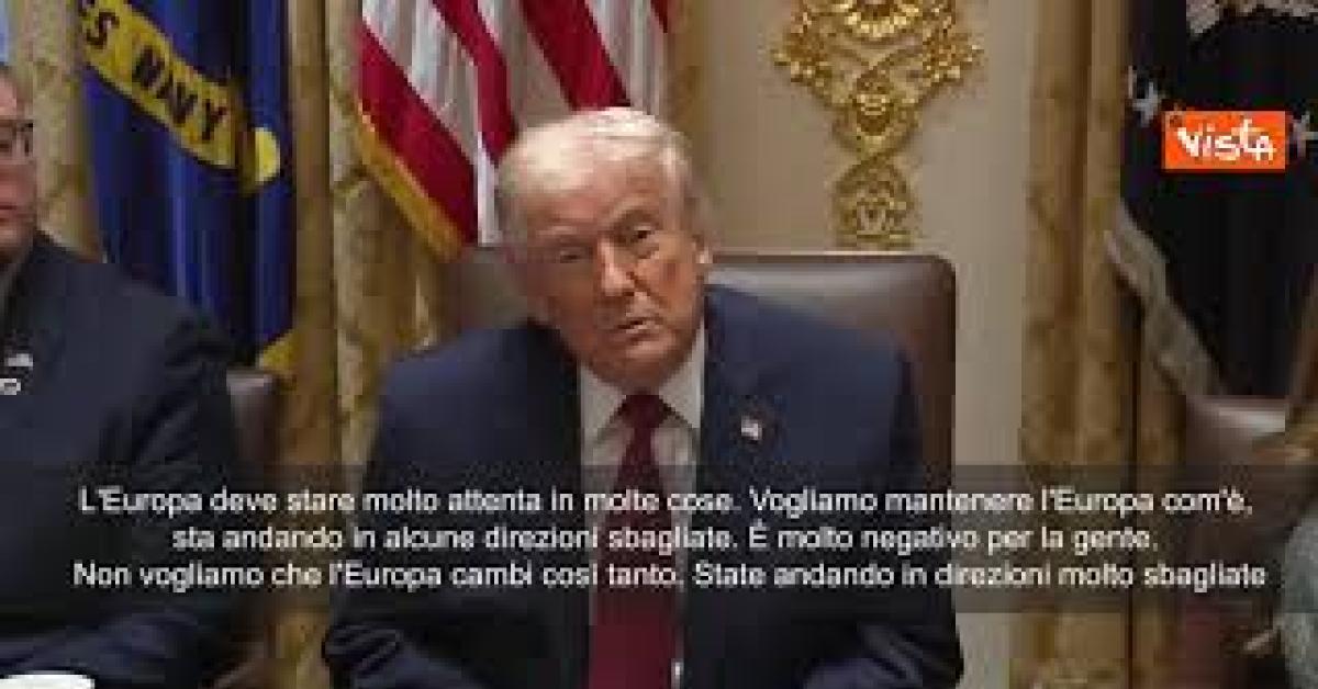 (Agenzia Vista) Usa, 09 dicembre 2025 "L'Europa deve stare molto attenta in molte cose. Vogliamo mantenere l'Europa com'è, sta andando in alcune direzioni sbagliate. È molto negativo per la gente. Non vogliamo che l'Europa cambi così tanto. State andando in direzioni molto sbagliate", lo ha detto il Presidente statunitense rispondendo alle domande dei giornalisti durante un evento economico ala Casa Bianca. X Fonte: Agenzia Vista / Alexander Jakhnagiev