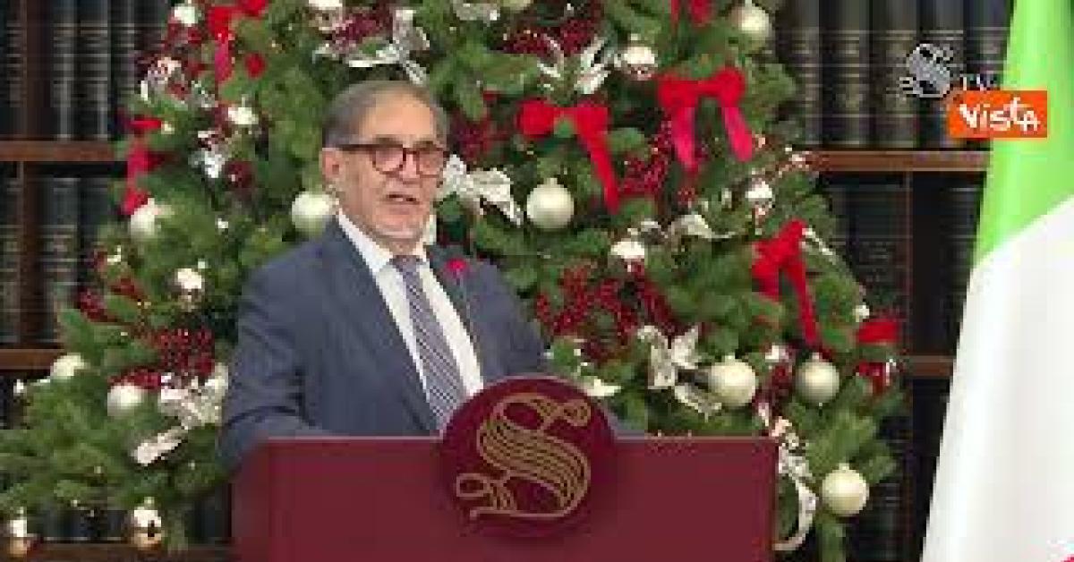 (Agenzia Vista) Roma, 11 dicembre 2025 "Per quanto riguarda la legge elettorale io farei il ballottaggio anche quando, seppure entrambe le parti avessero superato il 40 per cento che fa scattare il premio di maggioranza, ci fosse tra loro una distanza inferiore di un punto o un punto e mezzo". Lo ha detto il presidente del Senato Ignazio La Russa, durante la tradizionale cerimonia dello "scaldino", lo scambio di auguri di Natale con la stampa parlamentare. Senato Fonte: Agenzia Vista / Alexander Jakhnagiev