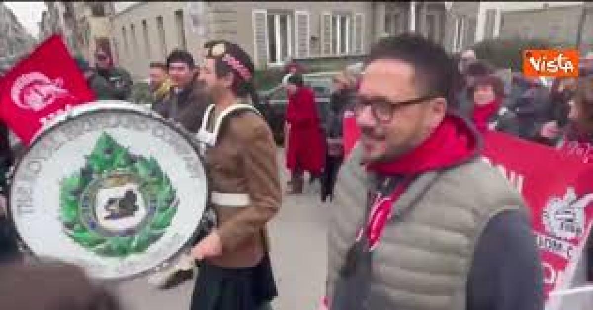Kilt scozzesi e suono di cornamuse al corteo Cgil a Firenze per lo sciopero generale