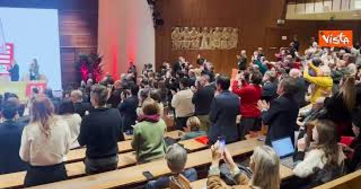 L'applauso per la segretaria Schlein all'assemblea del Pd
