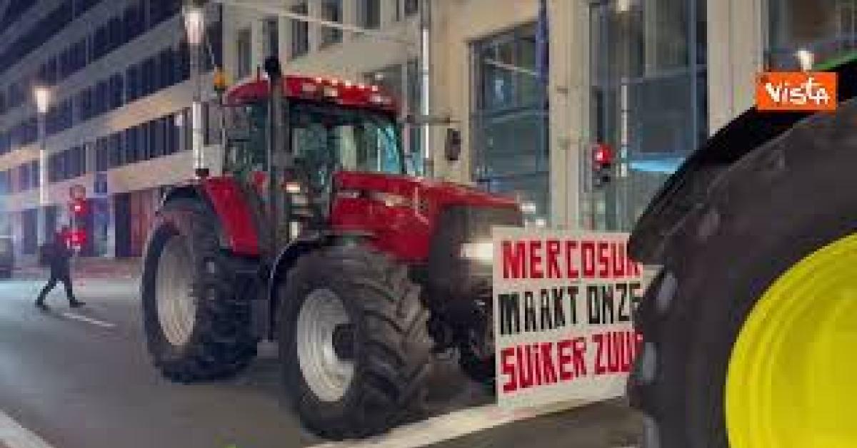 Gli agricoltori protestano con i trattori a Bruxelles al Consiglio Ue contro Mercosur e nuova Pac