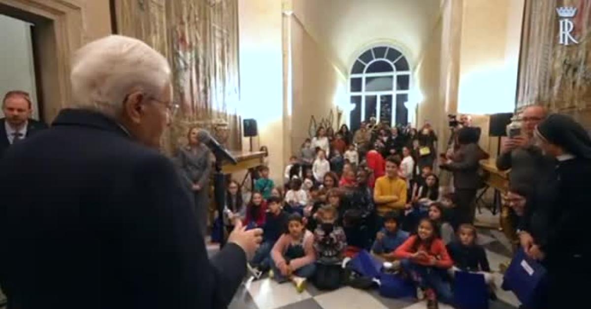 Il Capo dello Stato ha incontrato 60 tra bambine e bambini ospiti di case famiglia, proposte da Roma Capitale. Durante l'incontro, ai bambini è stata offerta una merenda e sono stati consegnati loro dei doni sotto l'abete, addobbato alla Vetrata.