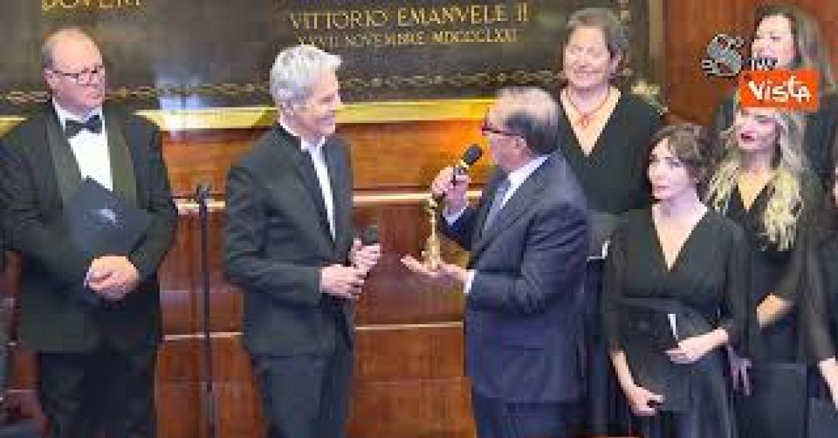 Claudio Baglioni riceve la Martinella da La Russa al Concerto di Natale al Senato