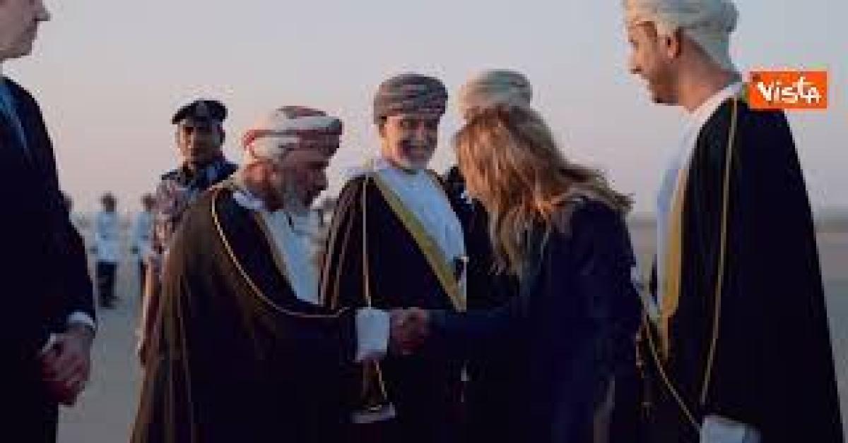 La Presidente del Consiglio, Giorgia Meloni, e' arrivata all'aeroporto internazionale di Mascate per una visita ufficiale nel Sultanato dell'Oman, prima tappa della sua missione in Asia. All'aeroporto, la Presidente Meloni e la delegazione italiana sono stati ricevuti dal Vice Primo Ministro della Difesa, H.H. Sayyid Shihab bin Tariq Al Said, e dall'Ambasciatore d'Italia a Mascate, Pierluigi D'Elia. Presso la Residenza Reale Al Barakah Palace si terra' un incontro bilaterale con il Sultano dell'Oman, Sua Maesta' Haitham bin Tarik, durante il quale si discuteranno temi di cooperazione bilaterale e relazioni strategiche.