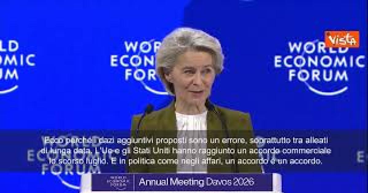 “Consideriamo il popolo degli Usa non solo come nostri alleati, ma come amici. Trascinarci in una pericolosa spirale discendente finirebbe solo per aiutare gli stessi avversari che entrambi siamo impegnati a tenere fuori dal nostro orizzonte strategico. Ecco perché i dazi aggiuntivi proposti sono un errore, soprattutto tra alleati di lunga data. L'Ue e gli Stati Uniti hanno raggiunto un accordo commerciale lo scorso luglio. E in politica come negli affari, un accordo è un accordo. E quando gli amici si stringono la mano, deve pur significare qualcosa". Lo ha detto la presidente della Commissione europea, Ursula von der Leyen, a Davos.