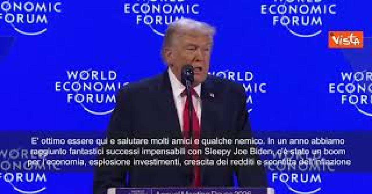 (Agenzia Vista) Davos, 21 gennaio 2026 "E' ottimo essere qui e salutare molti amici e qualche nemico. In un anno abbiamo raggiunto fantastici successi impensabili con Sleepy Joe Biden, c'è stato un boom dell'economia, l'esplosione degli investimenti, la crescita dei redditi e la sconfitta dell'inflazione". Lo ha detto il presidente degli Stati Uniti Donald Trump nel suo intervento al World Economic Forum di Davos. Wef Fonte: Agenzia Vista / Alexander Jakhnagiev