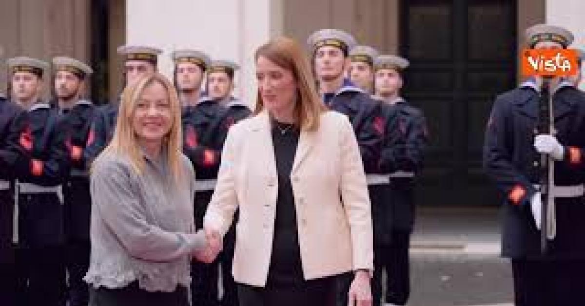 Giorgia Meloni riceve a Palazzo Chigi Presidente del Parlamento Europeo Metsola