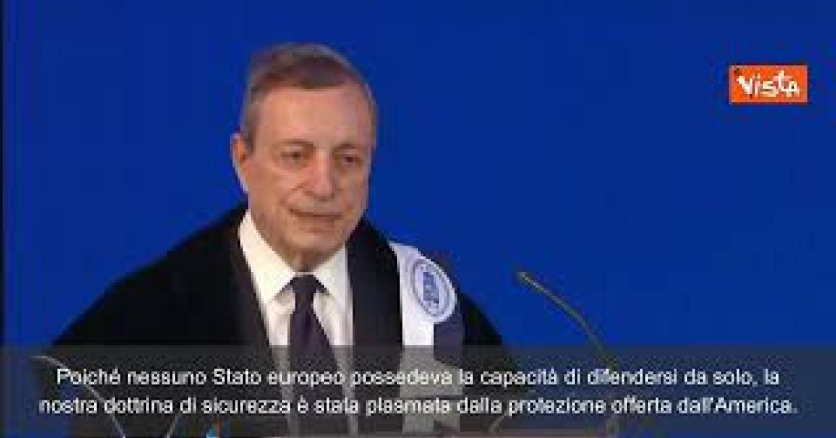 "Fin dalla sua nascita, l'architettura dell'Ue ha incarnato la convinzione che l’ordine giuridico internazionale fondato sul diritto, sostenuto da istituzioni credibili, favorisca pace e prosperità. Poiché nessuno Stato europeo possedeva la capacità di difendersi da solo, la nostra dottrina di sicurezza è stata plasmata dalla protezione offerta dall'America. Insieme, e sempre in alleanza con gli Stati Uniti, siamo stati in grado di affrontare qualsiasi minaccia e garantire la pace in Europa. Con la sicurezza garantita e con il commercio che fluiva principalmente all'interno di quell'alleanza, abbiamo potuto perseguire incolumi l'apertura economica come fondamento della nostra prosperità e della nostra influenza. Ma se quell'ordine globale ormai defunto è fallito, non è perché fosse costruito sull'illusione" così Mario Draghi, ricevendo la laurea ad honoris causa all’Università di Lovanio nelle Fiandre.