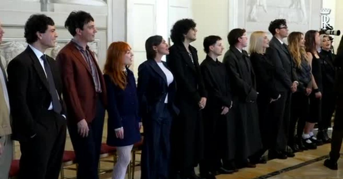 Roma, 13 feb. (askanews) - I cantanti di Sanremo ospiti di Sergio Mattarella al Quirinale hanno intonato la prima strofa di "Azzurro" di Paolo Conte (e portato al successo da Celentano) per il Presidente della Repubblica che ha ringraziato e commentato ironicamente: "Grazie. Ricordavo le parole, ma non mi sono associato perché dall'asilo mi hanno insegnato a cantare senza emettere suoni, per non turbare il coro degli altri. Quindi vi ringrazio molto. Tanti auguri e grazie di questo ricordo magnifico, perché ricordo quella canzone e il grande successo che ha avuto".