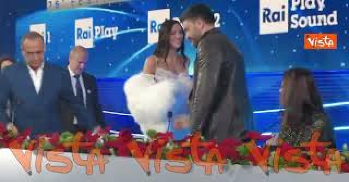 Irina Shayk arriva in Sala stampa, Conti l'aspetta con i fiori
