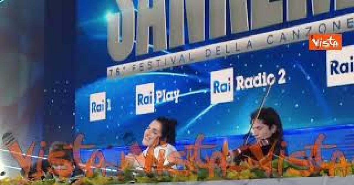 Levante canta il ritornello della sua canzone durante la conferenza stampa