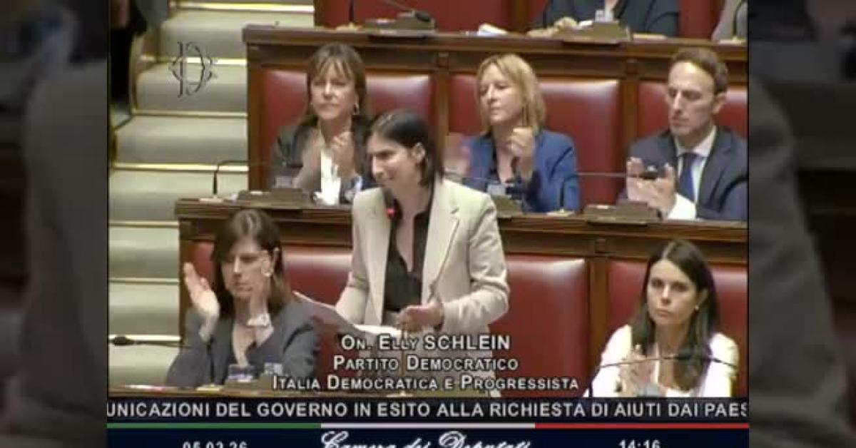 Roma, 5 mar. (askanews) - "Ministro Tajani e ministro Crosetto oggi non basta riferire, oggi serve una linea politica. E non dovevate essere voi a darla, doveva essere qui la presidente del Consiglio Giorgia Meloni e parlare al Paese che è giustamente preoccupato". Lo ha detto la segretaria Pd Elly Schlein parlando in aula alla Camera dopo le comunicazioni dei ministri Crosetto e Tajani.