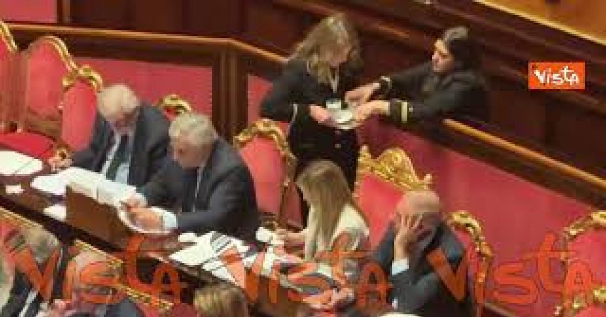Un bicchiere d'acqua per la premier Meloni durante la discussione in Senato sulla crisi in Iran