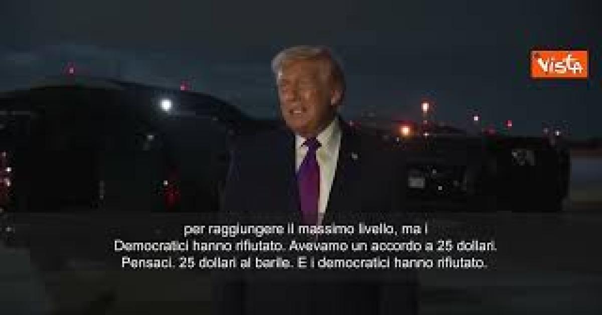 "Riserva petrolifera strategica? Riempiremo i serbatoi molto velocemente, riempiremo le nostre riserve. Le avrei riempite e avevamo fatto un accordo per questo, per raggiungere il massimo livello, ma i Democratici hanno rifiutato. Avevamo un accordo a 25 dollari. Pensaci. 25 dollari al barile. E i democratici hanno rifiutato. Avremmo riempito le riserve come non mai, avremmo sfruttato quell'accordo. Ma l'hanno rifiutato e ora il prezzo è molto più alto", lo ha detto Trump parlando con i cronisti.