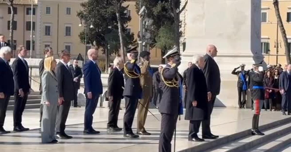 Roma, 17 mar. (askanews) - Il presidente della Repubblica, Sergio Mattarella, ha deposto una corona d'alloro sulla tomba del milite ignoto in occasione del 165esimo anniversario dell'Unità nazionale. Con il capo dello Stato all'altare della patria, in piazza Venezia a Roma, anche il presidente del Senato, Ignazio La Russa, il presidente della Camera, Lorenzo Fontana, la presidente del Consiglio, Giorgia Meloni, il presidente della Corte Costituzionale, Giovanni Amoroso e il ministro della Difesa, Guido Crosetto.