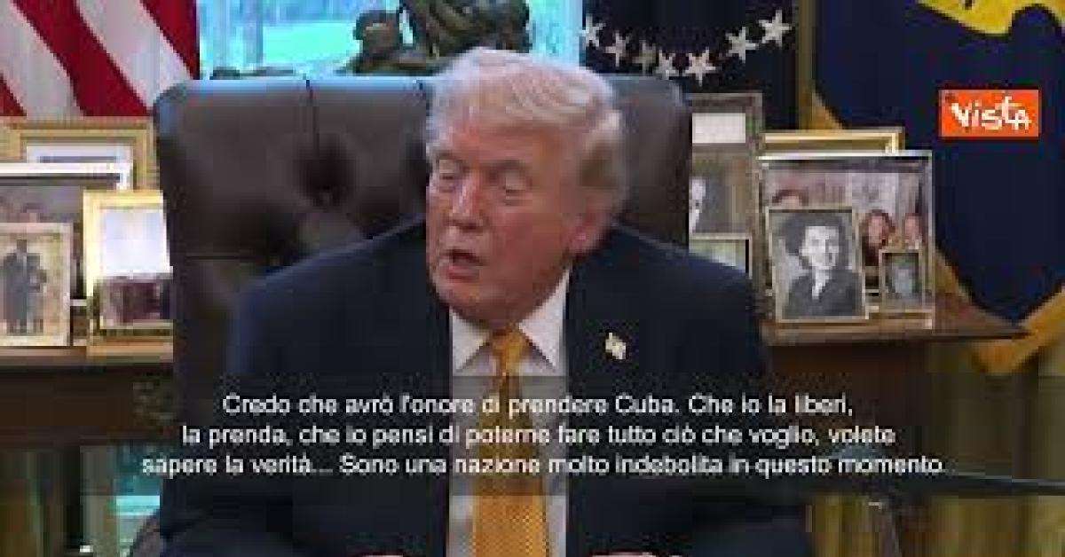 (Agenzia Vista) Usa, 17 marzo 2026 "Credo che avrò l'onore di prendere Cuba. Che io la liberi, la prenda, che io pensi di poterne fare tutto ciò che voglio, volete sapere la verità... Sono una nazione molto indebolita in questo momento". Così Donald Trump parlando con i cronisti alla Casa Bianca, WhiteHouse Fonte: Agenzia Vista / Alexander Jakhnagiev