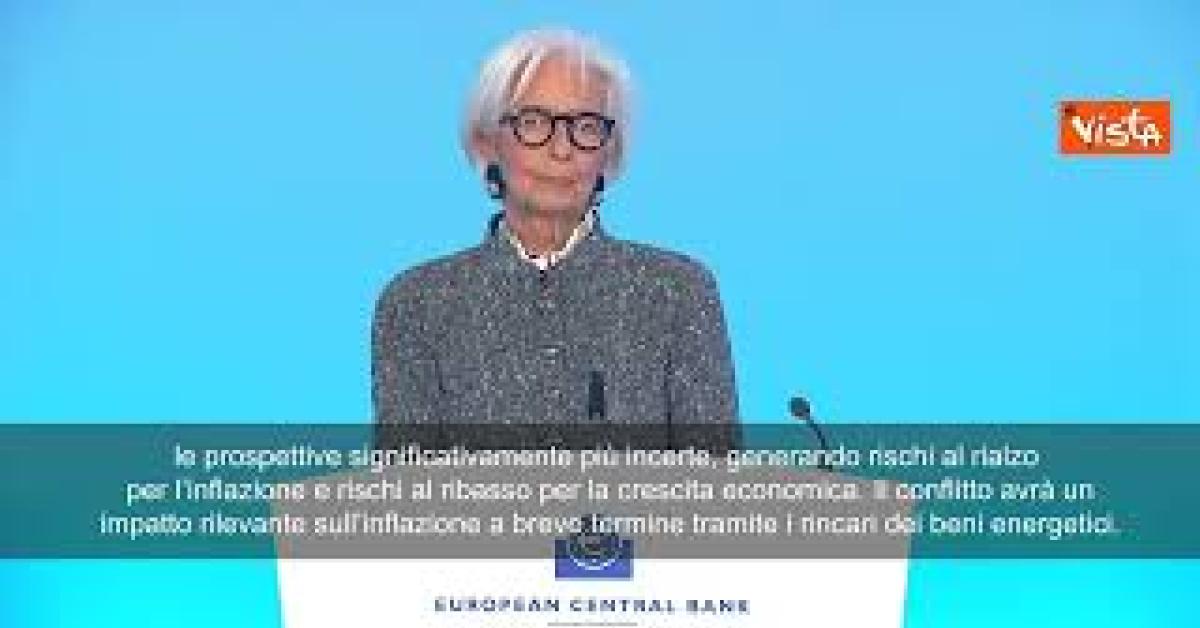 "La Banca centrale europea ha mantenuto il tasso sui depositi al 2%, quello sulle operazioni principali di rifinanziamento al 2,15% e quello sui prestiti marginali al 2,40%. La guerra in Medio Oriente ha reso le prospettive significativamente più incerte, generando rischi al rialzo per l’inflazione e rischi al ribasso per la crescita economica. Il conflitto avrà un impatto rilevante sull’inflazione a breve termine tramite i rincari dei beni energetici. Le implicazioni a medio termine dipenderanno dall’intensità e dalla durata della guerra nonché dal modo in cui le quotazioni dell’energia influenzeranno i prezzi al consumo e l’economia., lo ha detto la Presidente della Bce Lagarde.