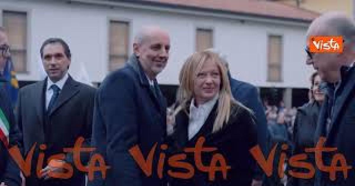 (Agenzia Vista) Roma, 22 marzo 2026 La Presidente del Consiglio Meloni a Pontida all'abbazia di San Giacomo per i funerali di Umberto Bossi. Meloni è stata accolta sul sagrato della chiesa da Giancarlo Giorgetti. Al suo arrivo applausi e qualcuno ha gridato "Vai Giorgia". Fonte: Agenzia Vista / Alexander Jakhnagiev