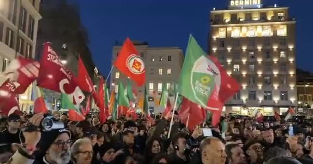 Roma, 23 mar. (askanews) - Dopo la vittoria del No al referendum sulla Giustizia l'opposizione è scesa in piazza per festeggiare: a Roma in piazza Barberini c'erano, insieme a diverse migliaia di persone, la segretaria del Pd Elly Schlein, il segretario generale della Cgil Maurizio Landini, il leader M5S Giuseppe Conte, i leader di Avs Nicola Fratoianni e Angelo Bonelli.