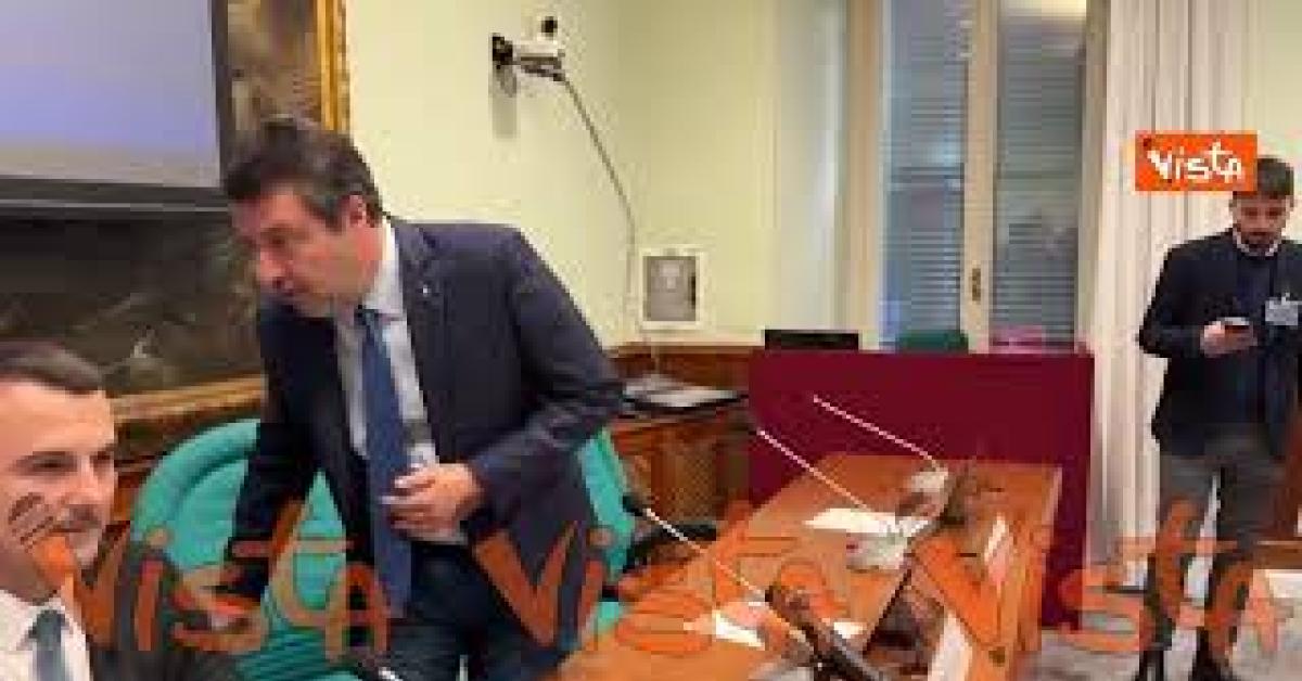 Amico Mio, il saluto di Salvini prima dell’inizio della conferenza stampa alla Camera