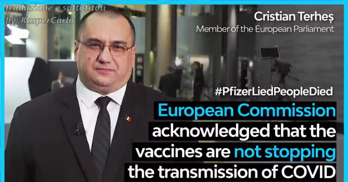 Cristian Terhes, politico della Romania e e membro del Parlamento Europeo, alla Commissione Ue: "Chiediamo il rimborso alle case farmaceutiche per i sieri inutili e dannosi". Inutili in quanto "non proteggono dal contagio" e dannosi "per le reazioni avverse" che comportano. "Pfizer e il Governo ci hanno mentito", afferma Terhes nel video. "Ora sappiamo che i vaccini non impediscono la trasmissione del Covid-19. Questa è una verità che tutti sapevano. Guardate con attenzione cosa ha risposto il rappresentante della Commissione Europea ad una mia domanda nella Commissione Speciale Covid del Parlamento Ue".