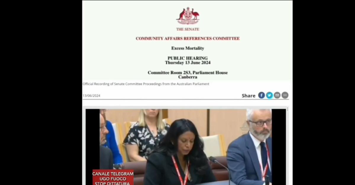 La dottoressa Jeyanthi Kunadhasan ha testimoniato davanti a una commissione del Senato australiano, asserendo come nello studio clinico condotto dalla Pfizer ci siano stati più decessi nel gruppo vaccinato rispetto al gruppo placebo, per colpa delle reazioni avverse: "Sono un'anestesista ed un medico perioperatorio e tesoriere dell'AMS. Faccio anche parte di un gruppo di ricercatori volontari sotto l'egida del Daily Cloud IO che hanno indagato sui documenti disponibili al pubblico che hanno costituito la base dell'approvazione del vaccino Covid di Pfizer".
