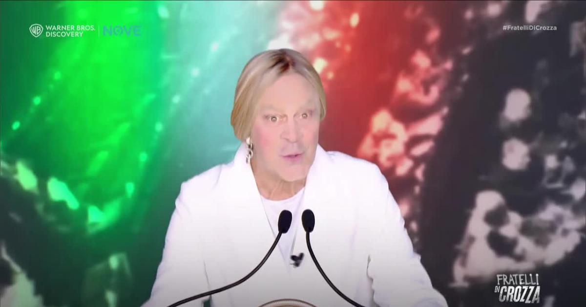 Nella nuova puntata di FRATELLI DI CROZZA - in onda il venerdì in prima serata sul NOVE e in streaming su discovery+ - Maurizio Crozza è la Premier Giorgia Meloni, che dice la sua dopo il convegno sul premierato a Roma: «No, per dì, io dalla mia c’ho la Zanicchi mica Zagrebelsky, e agli italiani gli ho promesso 77 euri se mi votavano alle Europee e me votano. Ma se mi votano il premierato, oltre le Europee, come dice la grande costituzionalista di Ligonchio: IO GLI DARÒ DI PIÙ, IO GLI DARÒ DI PIÙ, DA SETTANTASETTE NETTI che pijano ora FINO AI CENTO LORDI che netto fa? 77? E allora, NON VI DARÒ DI PIÙ, NON VI DARÒ DI PIÙ».