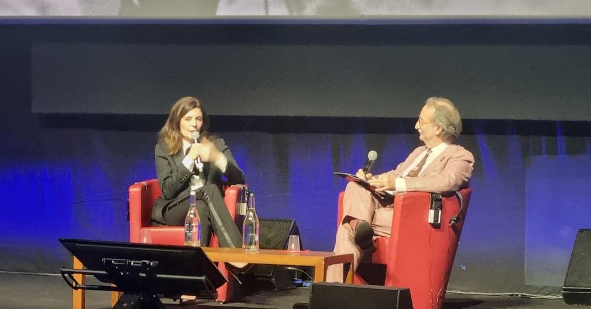 Figlia di Marcello Mastroianni e di Catherine Deneuve, Chiara, dal portamento e dal look ineccepibili, dotata di ironia oltre che di quel tipo di bellezza che il tempo non scalfisce, semmai rende fascinoso ancor più, ricorda con ironia e stima, però anche con un pò di tristezza nelle retrovie dei suoi pensieri condivisi, alcuni momenti di e con papà, soffermandosi particolarmente sul suo rapporto, d'amicizia e professionale, con il grande Federico Fellini.