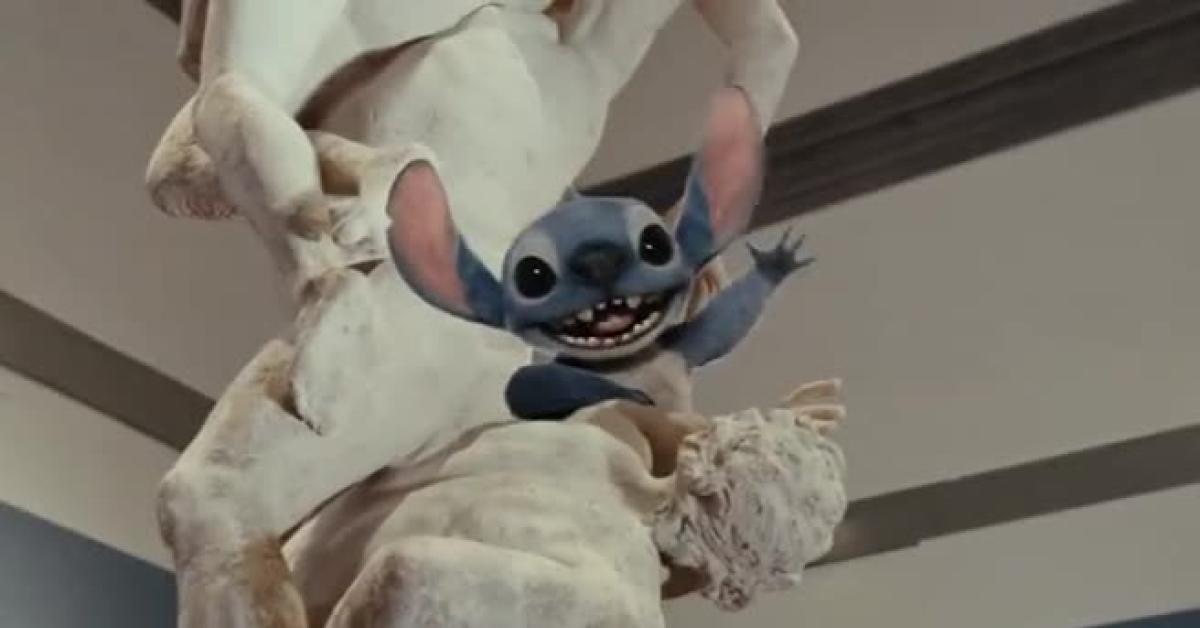 Profondamente colpito e ispirato dall'arte italiana, Stitch decide di lasciare un segno del suo passaggio: lo vediamo realizzare una scultura in gesso, impreziosita da un drappo che richiama i codici formali dell'arte classica.