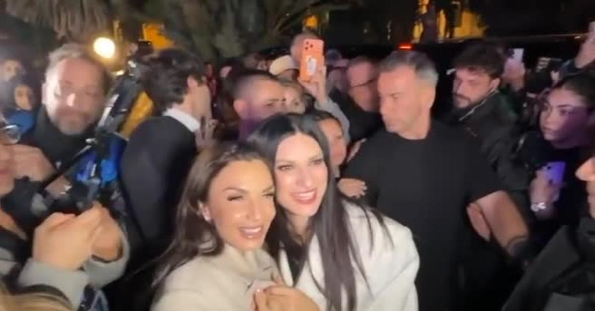 Le due si sono incontrate a metà della passerella e si sono concesse al pubblico che gridava "siete bellissime", salutandosi e facendosi fare foto insieme.