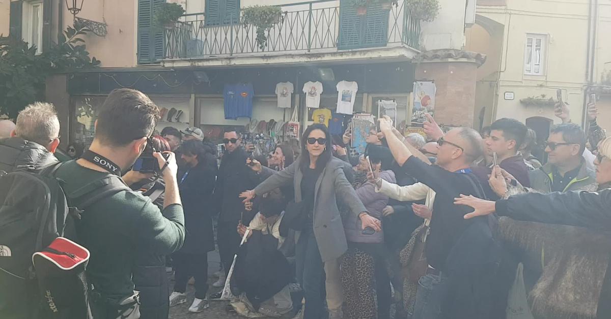 Oggi, davanti alla Basilica di San Siro di Sanremo, una folla di fan e giornalisti ha accolto l'arrivo di Sal Da Vinci in look total white, su una moto bianca, per raggiungere una apecar piena di fiori bianchi e confetti che sono stati distribuiti a tutti.