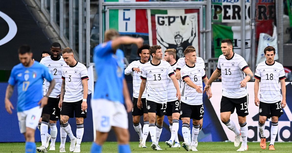 L'Italia, che pure era partita bene, ha subito la botta dello svantaggio immediato dei tedeschi, incontrati appena pochi giorni prima quando la sfida era finita per 1-1. Per i primi trenta minuti del primo tempo, gli Azzurri sono stati spettatori non paganti del match. In campo, infatti, sembravano esserci solo maglie bianche. I giocatori allenati dal ct Roberto Mancini parevano non vedere palla. I tedeschi sono arrivati anche vicini al gol del raddoppio al 31esimo. A negare il doppio vantaggio una grande parata del portiere ex Milan ora al Psg Gianluigi Donnarumma.