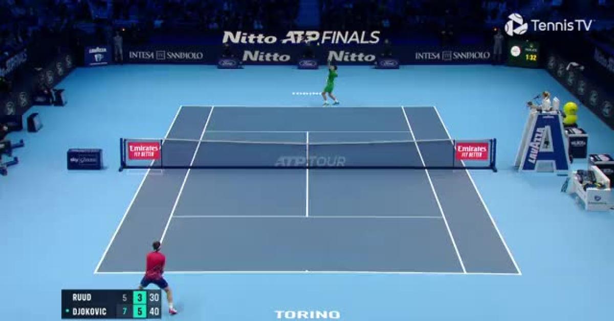 Ecco il momento in cui il campione serbo Novak Djokovic alle ATP finals di Torino suggella la vittoria contro il norvegese Casper Ruud battendolo 2-0 in un duello senza storia dall'inizio alla fine. Djokovic ha così raggiunto i sei successi di Roger Federer ed alla fine della partita ha ringraziato il pubblico dichiarando: "Avere aspettato sette anni per ottenere di nuovo questa vittoria la rende ancora più dolce. Ho detto mille volte quanto sia stata insolita questa stagione, tutti quelli che seguono il tennis lo sanno, e quindi questa è una grande soddisfazione".