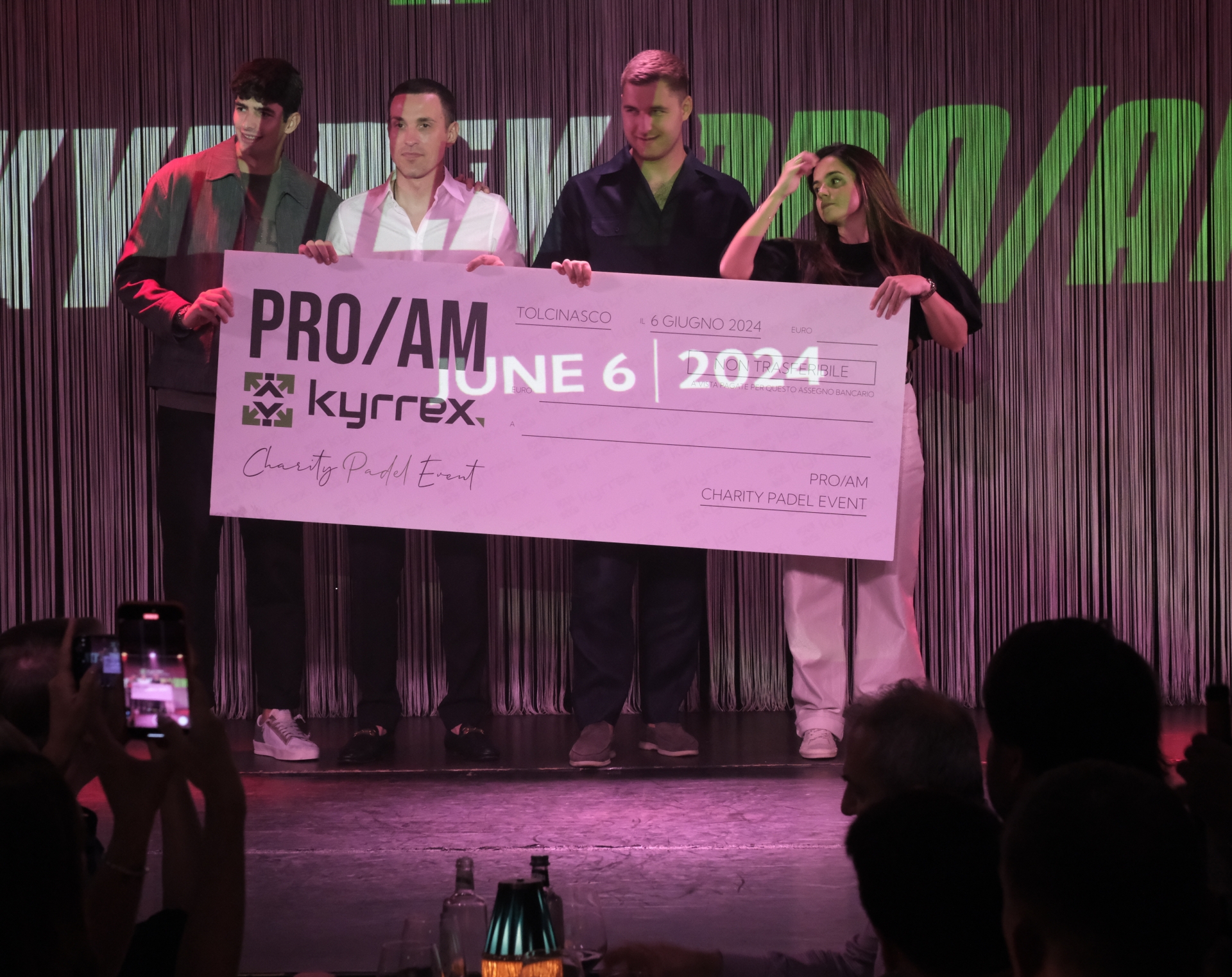 Kyrrex ha abbracciato anche il mondo dell’inclusivitá, vivendo il momento in cui Ruggero Venturini ha devoluto 1000 euro a Bionic People con la presenza del Presidente Alessandro Ossola e 1.000 euro a Giuseppe Galliano in rappresentanza del Circolo Canottieri Aniene di Roma, per il progetto “padel paraolimpico”.