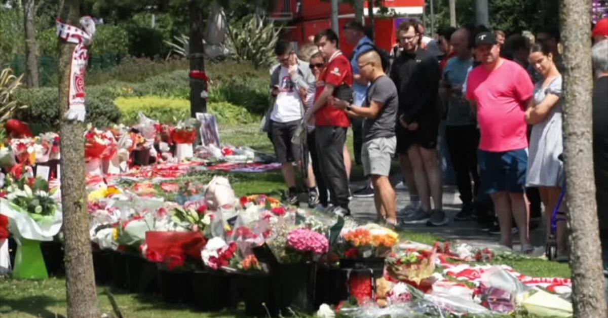 Liverpool, 3 lug. (askanews) - Sono davvero tanti i tifosi del Liverpool che stanno rendendo omaggio a Diogo Jota fuori dallo stadio di Anfield. Il giocatore portoghese è morto oggi in un incidente stradale in Spagna. I tifosi hanno deposto maglie, sciarpe, fiori e striscioni in segno di omaggio. Jota aveva sposato la sua compagna Rute Cardoso il 22 giugno, pubblicando un video del loro matrimonio su Instagram poche ore prima dell'incidente. Oltre alla moglie lasci tre figli piccoli.