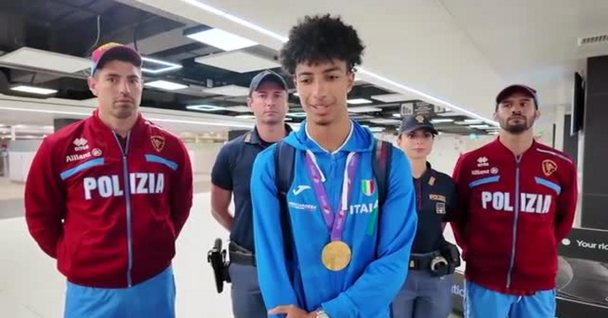 Roma, 20 set. (askanews) - Accoglienza da star per Mattia Furlani all'aeroporto di Roma Fiumicino, di ritorno dai Mondiali d'atletica di Tokyo dove ha conquistato uno storico oro nel salto in lungo. "La vittoria l'ho dedicata a tutto il mio team, è arrivata dopo una stagione lunghissima, quindi ci tenevo a ringraziare tutti quanti - ha detto - ho capito di aver vinto solo quando la gara è finita, non si sa mai cosa può succedere in una gara finché non finisce".