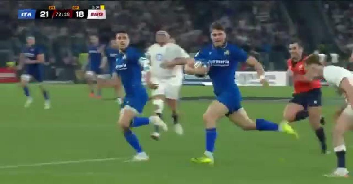 Nel secondo tempo l’Inghilterra è partita forte, arrivando a un punteggio parziale di 18-10, ma l’Italia ha saputo reagire e ha ribaltato il risultato portandosi sul 23-18 a sette minuti dalla fine. Nella meta di Marin,con cui gli Azzurri hanno preso il comando, è stato decisivo ancora Menoncello, con una giocata spettacolare.